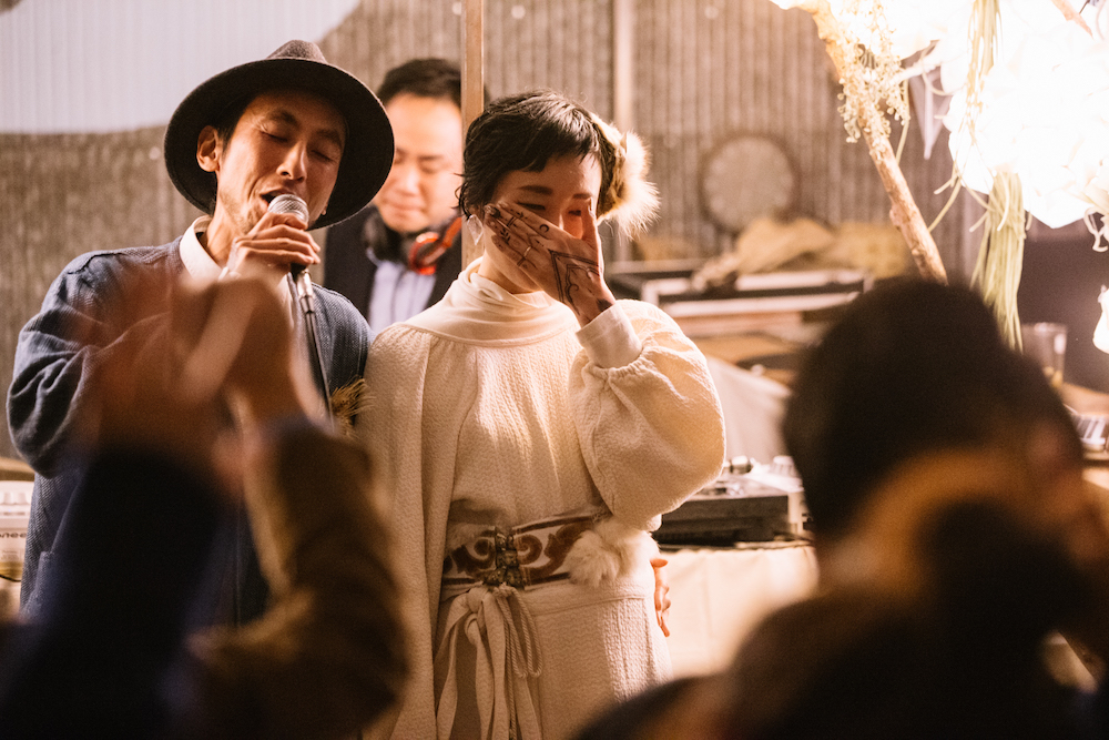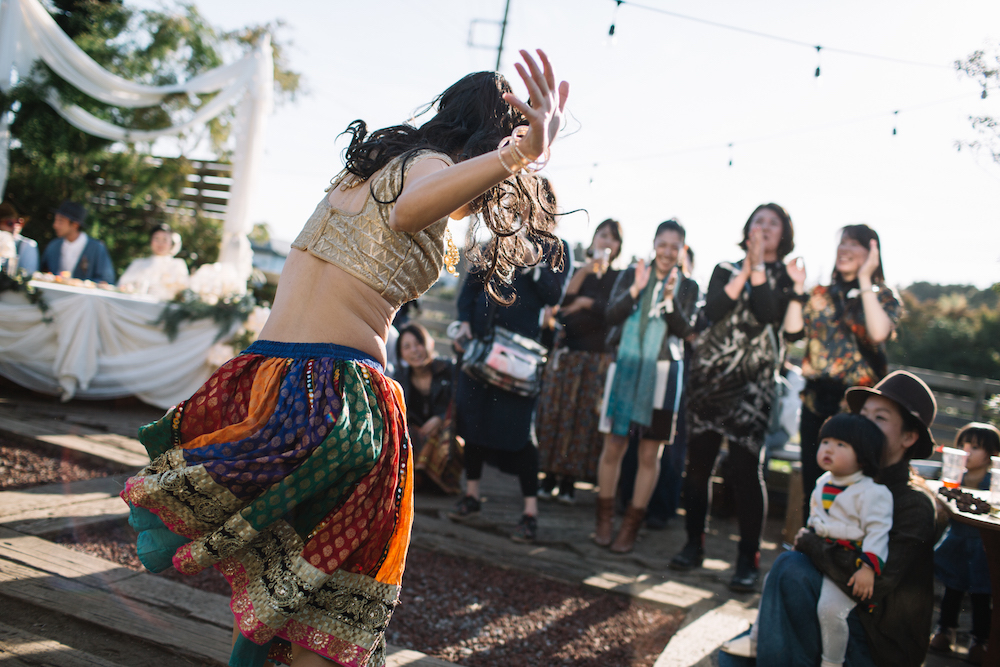 夫婦の古くからの友人たちが集まり、みんなで協力して作り上げた素敵なパーティーで、DJやライブでみんなで踊り、歌い、そして感動で涙溢れる、本当に素敵な時間でした。