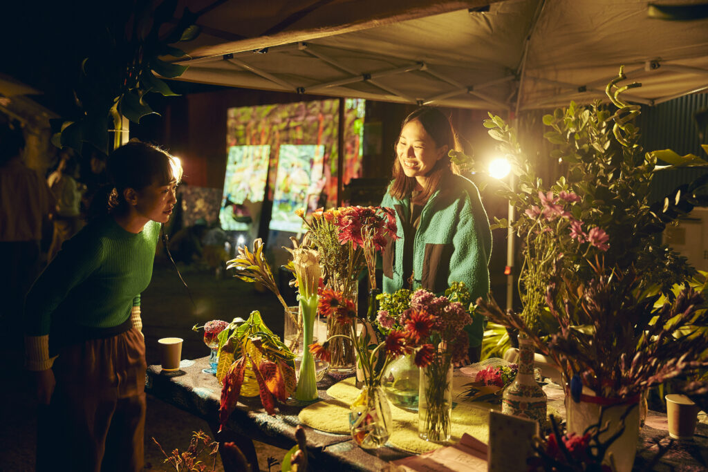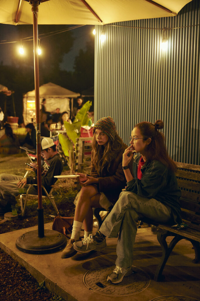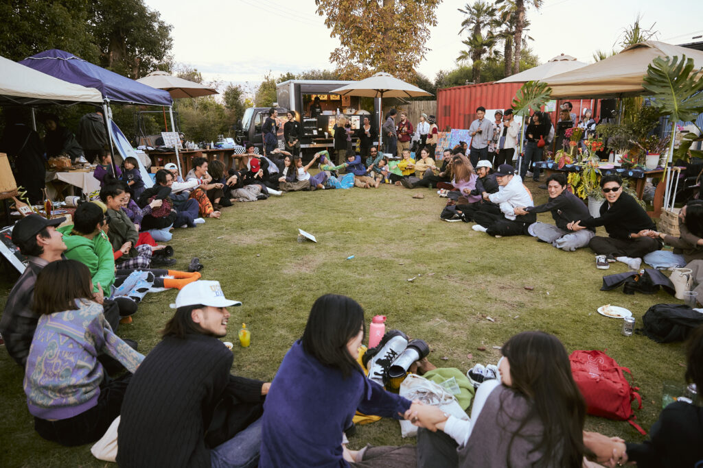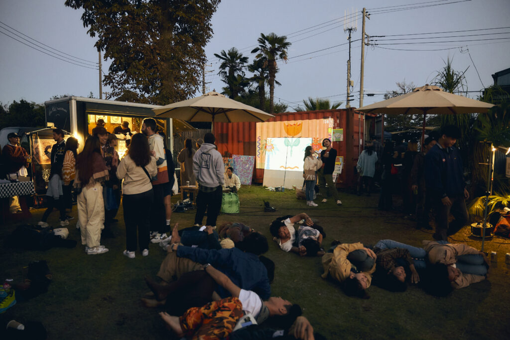 自然との調和。人と人の繋がり。 自分自身との対話を通して本来の自分へと還る、現代版御神事×体験型フェスティバル「月詠祭」の会場としてご利用いただきました。 芝生やコンテナなどLAND KNOTの敷地を生かし、昼は活気に溢れ、夜は幻想的なイベントになりました。