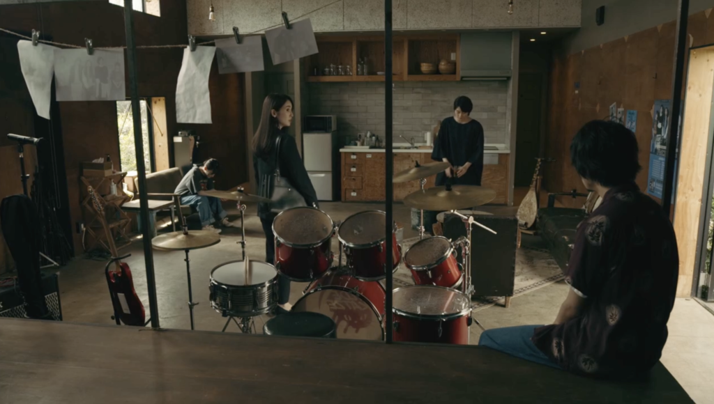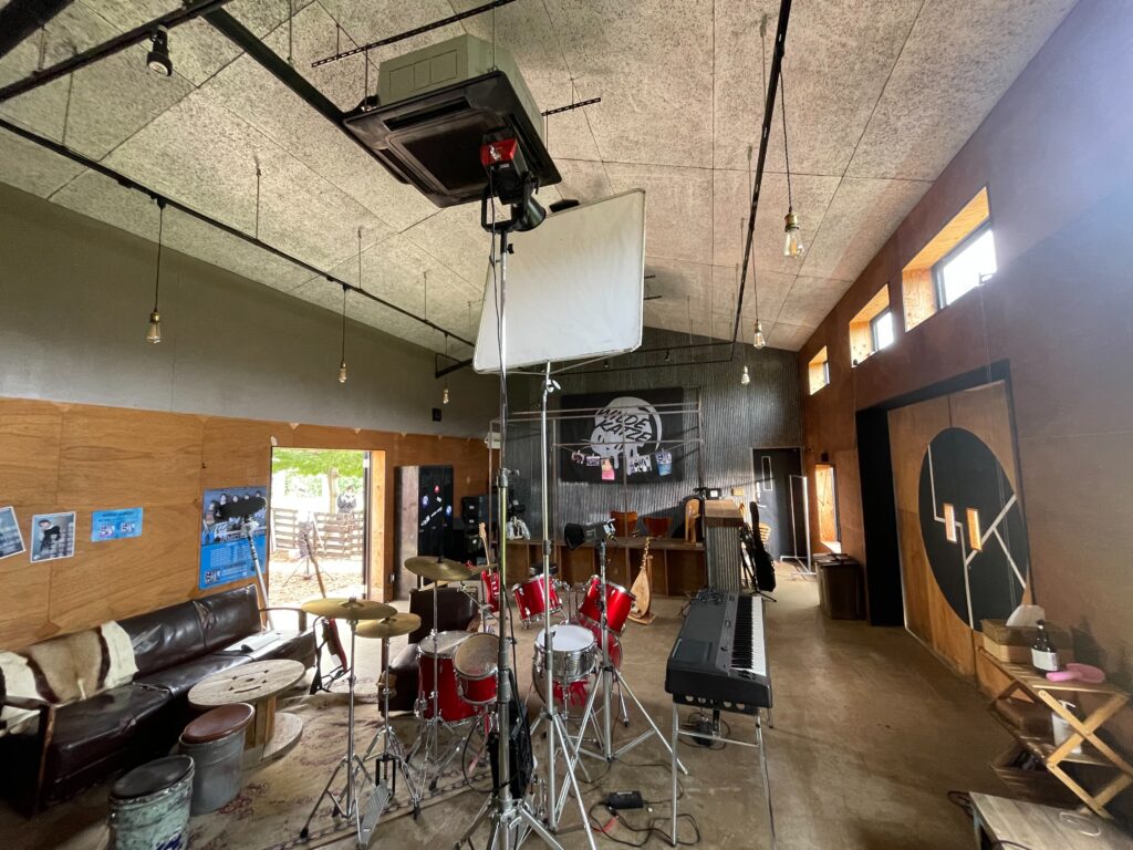 バンドメンバーの音楽スタジオという設定で、楽器を持ち込んでの撮影でした。